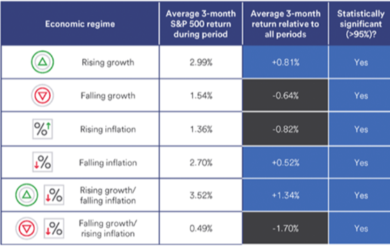 - Election: While many of us closely monitor election results for their potential effect on stock market performance, it’s important to recognize other factors that may have greater impact on your portfolios. As the chart below shows, the historical data suggests that economic and inflation trends, more so than election outcomes, tend to have a stronger, more consistent relationship with market returns.